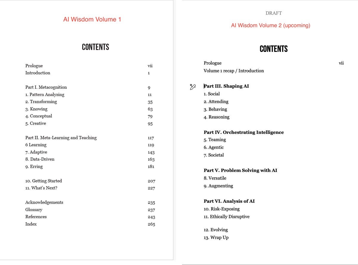 I think I have a way forward, and yet didn’t think I could make it anywhere in the conversation if people don’t know what I’m talking about. So I’ve written AI Wisdom Volume 1:Meta-Principles of Thinking and Learning and am working on Volume 2. The Table of Contents for each are below.